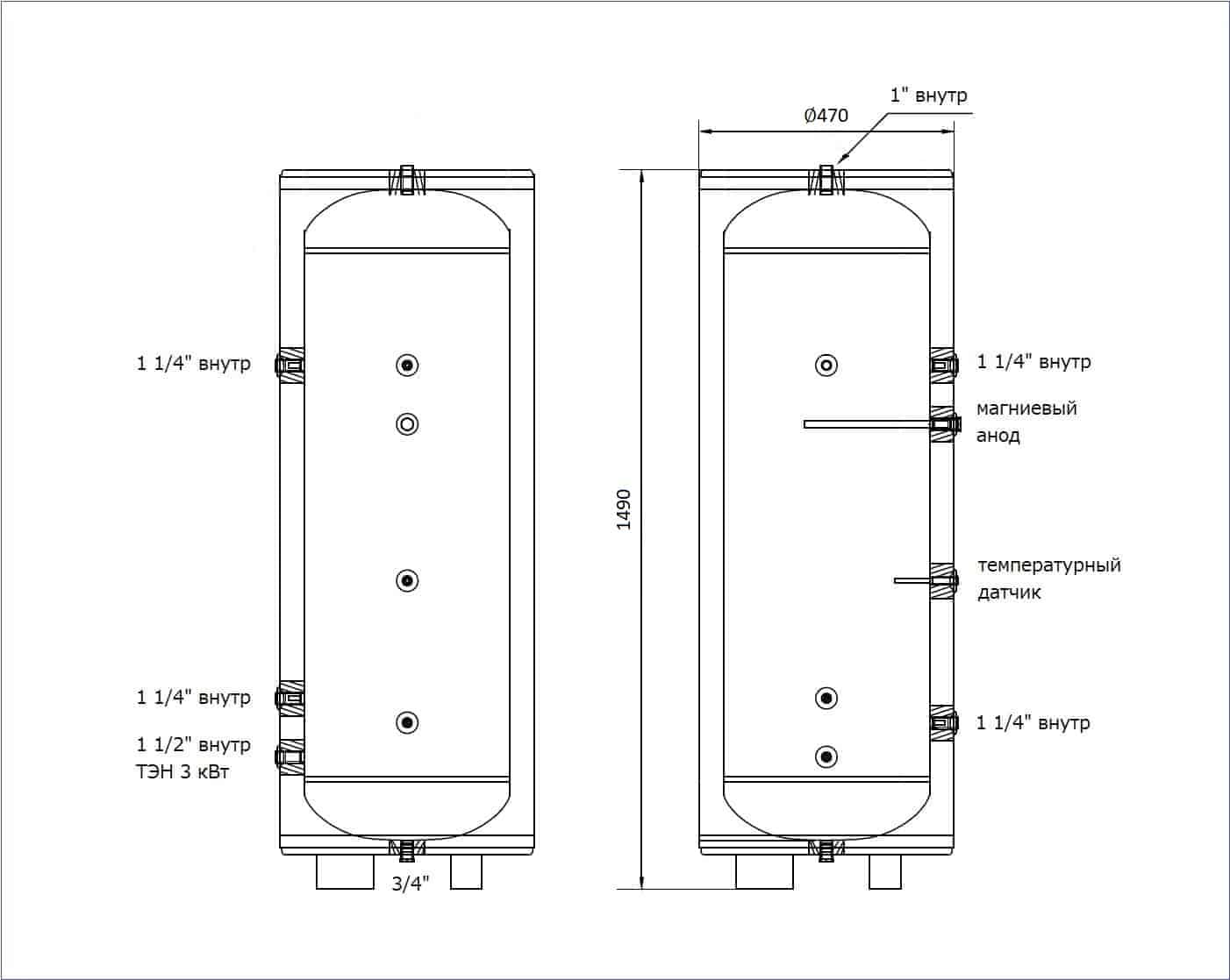 | Размер резьбы для ТЭНа | G 1 1/2" |
