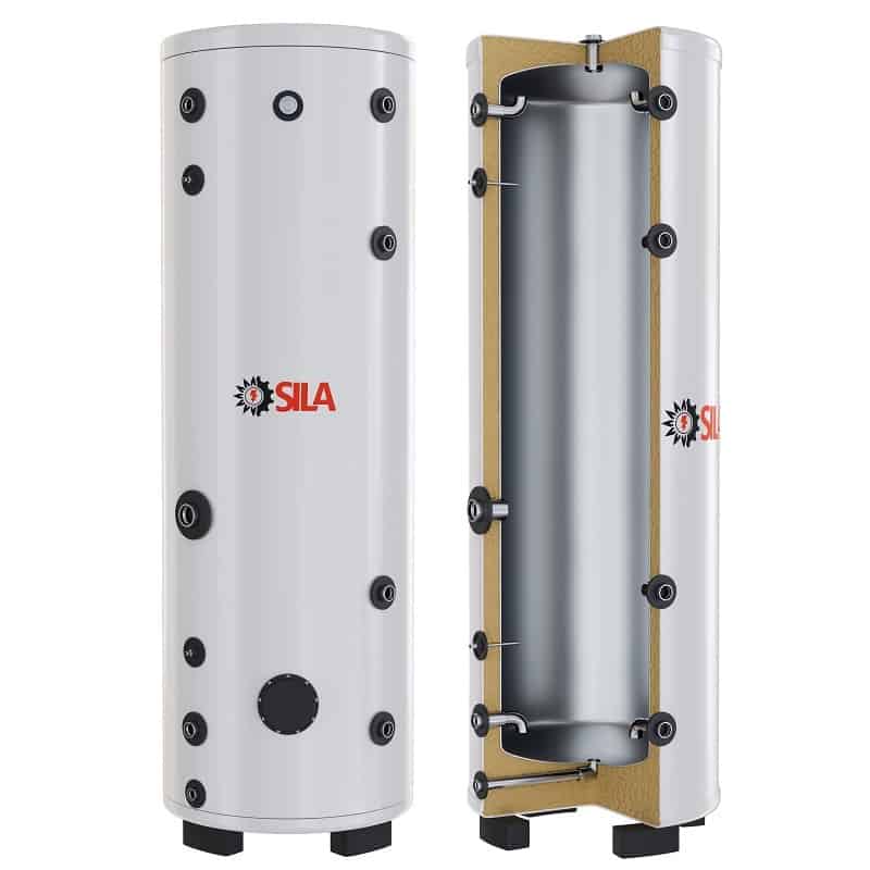 Бак SILA SST-400 предназначен для использования с тепловым насосом. Чтобы компрессор теплового насоса мог работать долго и безотказно, ему необходимо обеспечить ровную нагрузку без существенных пиковых скачков теплоснабжения. Это важно для своевременной передачи генерируемого тепла дальше в систему отопления. В противном случае возможно неконтролируемое повышение давления и возможны поломки. Для каждого теплового насоса установлен минимальный объемный расход. Он всегда указывается в сопроводительной документации. Минимально необходимый объемный расход определяется максимальной производительностью теплового насоса. Воздушно-водяные тепловые насосы компании SILA имеют минимально необходимый расход равный 3 л на 1 кВт отопительной мощности. Когда объем теплоносителя в отопительном контуре не является достаточным для обеспечения условия минимального расхода - используется буферная емкость.