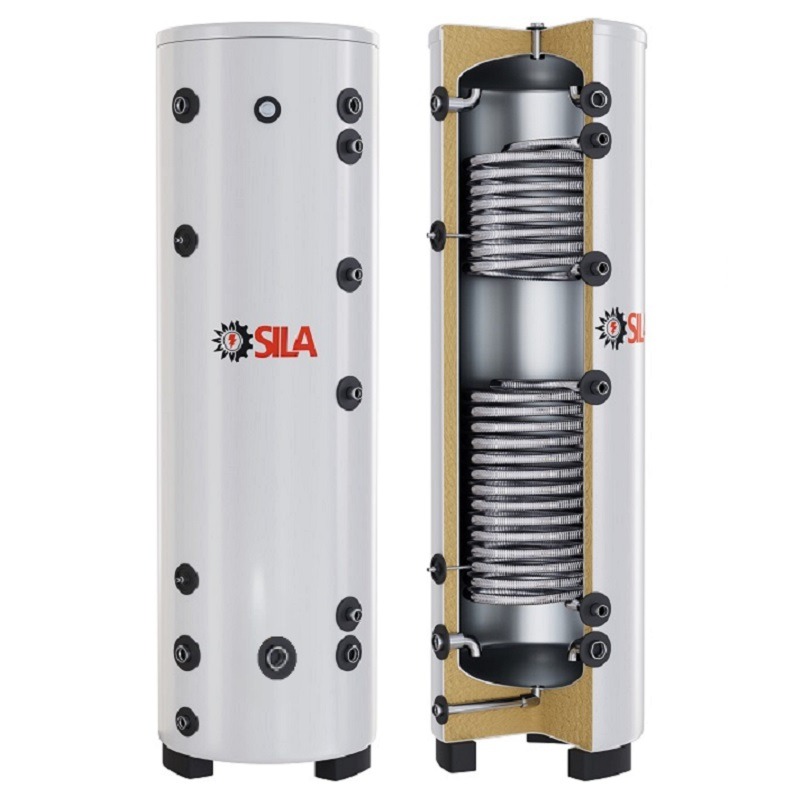 Напольный бойлер косвенного нагрева SILA SST-300-D ( бак аккумулятор ) объемом 300 литров из качественной нержавеющей стали толщиной 1,5 мм с двумя теплообменниками из медицинской нержавеющей стали SUS316L, предназначен для нагрева, аккумулирования и последующего использования горячей воды для отопления и горячего водоснабжения вашего дома. Использование в системе бака аккумулятора SILA SST-300-D значительно увеличивает ее ЭФФЕКТИВНОСТЬ и БЕЗОПАСНОСТЬ, предотвращая закипание и прочие неприятности. Эффективная работа твердотопливного котла или теплового насоса без бака аккумулятора – НЕВОЗМОЖНА, КПД системы снижается в разы, тепло в прямом смысле этого слова вылетает в трубу.