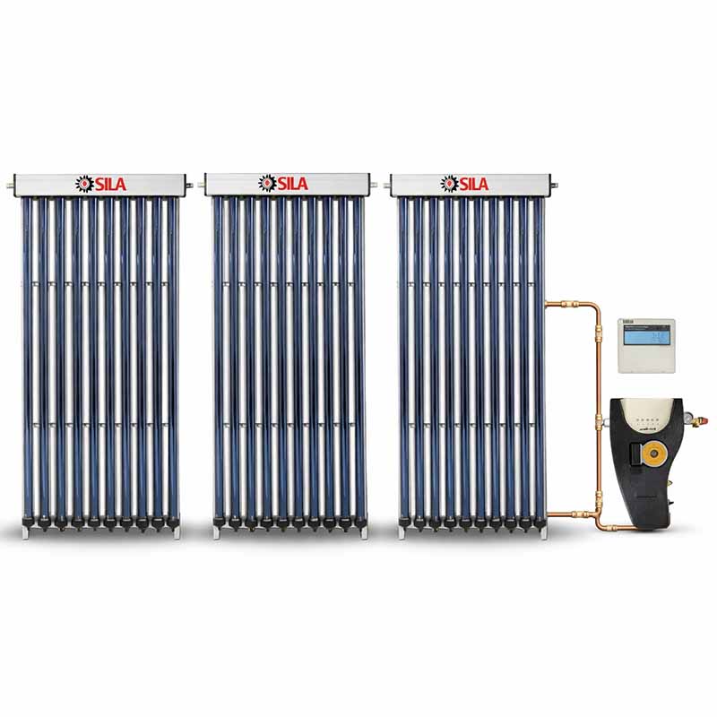 Гелиосистема Подогрев бассейна 24 м3 предназначена для нагрева воды в бассейне. Базовым элементом гелиосистемы являются вакуумные солнечные коллекторы SILA 20-24. Использование вакуума обеспечивает превосходную теплоизоляцию, поэтому вакуумные коллекторы могут эффективно использоваться круглый год, даже при температурах окружающей среды до -40°С. С помощью вакуумного коллектора Вы можете нагревать воду в бассейне летом, а зимой использовать его для целей ГВС или поддержки системы отопления. Гелиосистема рассчитана для бассейна с площадью поверхности до 16 м2 и объемом воды до 24 м3.