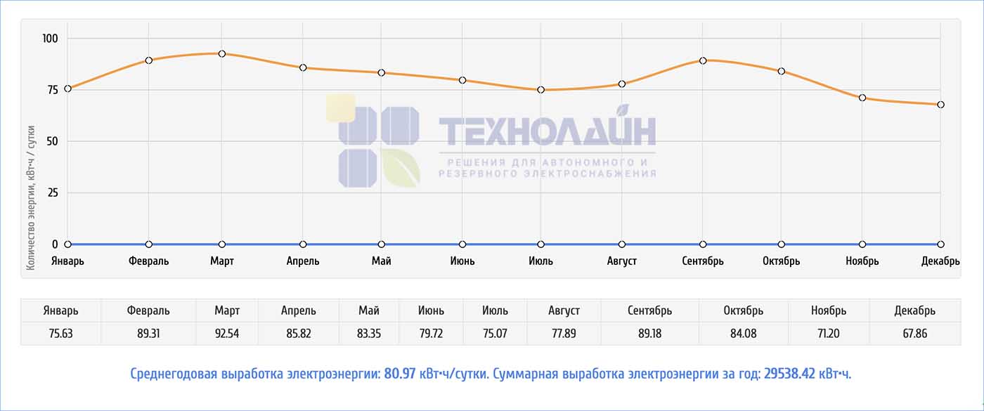 • Выработка согласно статистическим данным - до 80.79 кВт*ч/сутки
