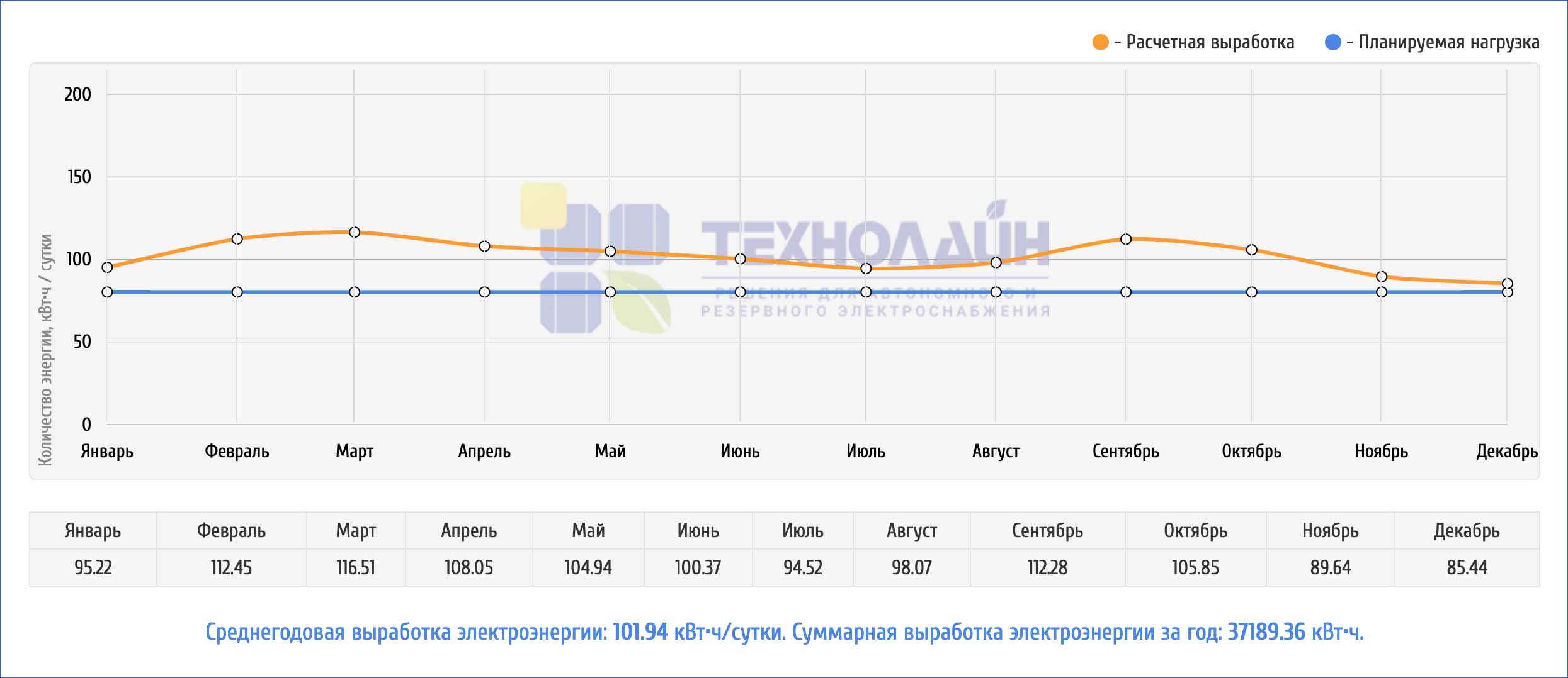 | Максимальная выработка | до 101,94 кВт*ч/сутки |