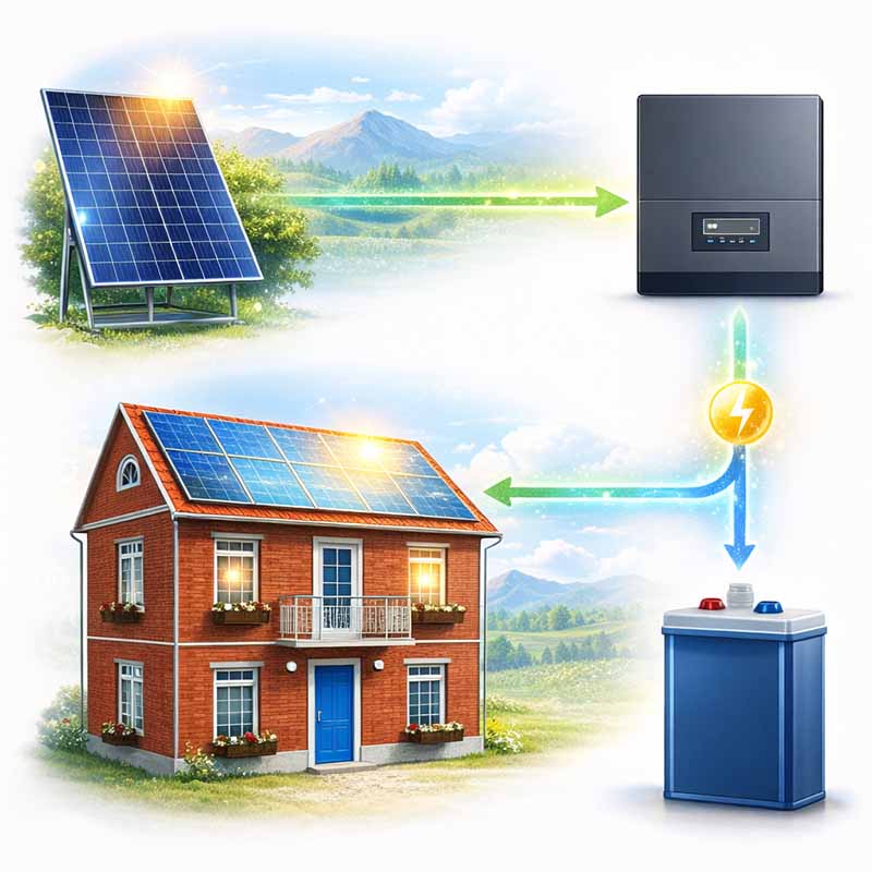 Функция подмешивания позволяет смешивать энергию от солнечных батарей с электроэнергией от центральной ( городской ) электро-сети, для питания нагрузки. К примеру ваше потребление в текущий момент времени 4кВт*ч, а солнечные батареи вырабатывают всего 3 кВт*ч, в этом случае инвертор с функцией подмешивания пустит на нагрузку все что вырабатывает солнце ( в данном примере это 3 квт*ч ), а недостающие 1 кВт*ч возьмет от центральной электро-сети, не разряжая АКБ и тем самым продлевая срок их службы. А обычный инвертор ( без функции подмешивания ) в такой же ситуации полностью переключит питание нагрузки ( все 4 кВт*ч ) либо на сеть либо на аккумуляторы ( в зависимости от настроек ), а вырабатываемые солнцем 3 кВт*ч пустит на подзарядку АКБ.