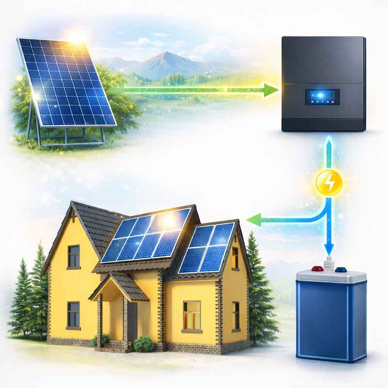 Функция подмешивания позволяет смешивать энергию от солнечных батарей с электроэнергией от центральной ( городской ) электро-сети, для питания нагрузки. К примеру ваше потребление в текущий момент времени 4кВт*ч, а солнечные батареи вырабатывают всего 3 кВт*ч, в этом случае инвертор с функцией подмешивания пустит на нагрузку все что вырабатывает солнце ( в данном примере это 3 квт*ч ), а недостающие 1 кВт*ч возьмет от центральной электро-сети, не разряжая АКБ и тем самым продлевая срок их службы. А обычный инвертор ( без функции подмешивания ) в такой же ситуации полностью переключит питание нагрузки ( все 4 кВт*ч ) либо на сеть либо на аккумуляторы ( в зависимости от настроек ), а вырабатываемые солнцем 3 кВт*ч пустит на подзарядку АКБ.