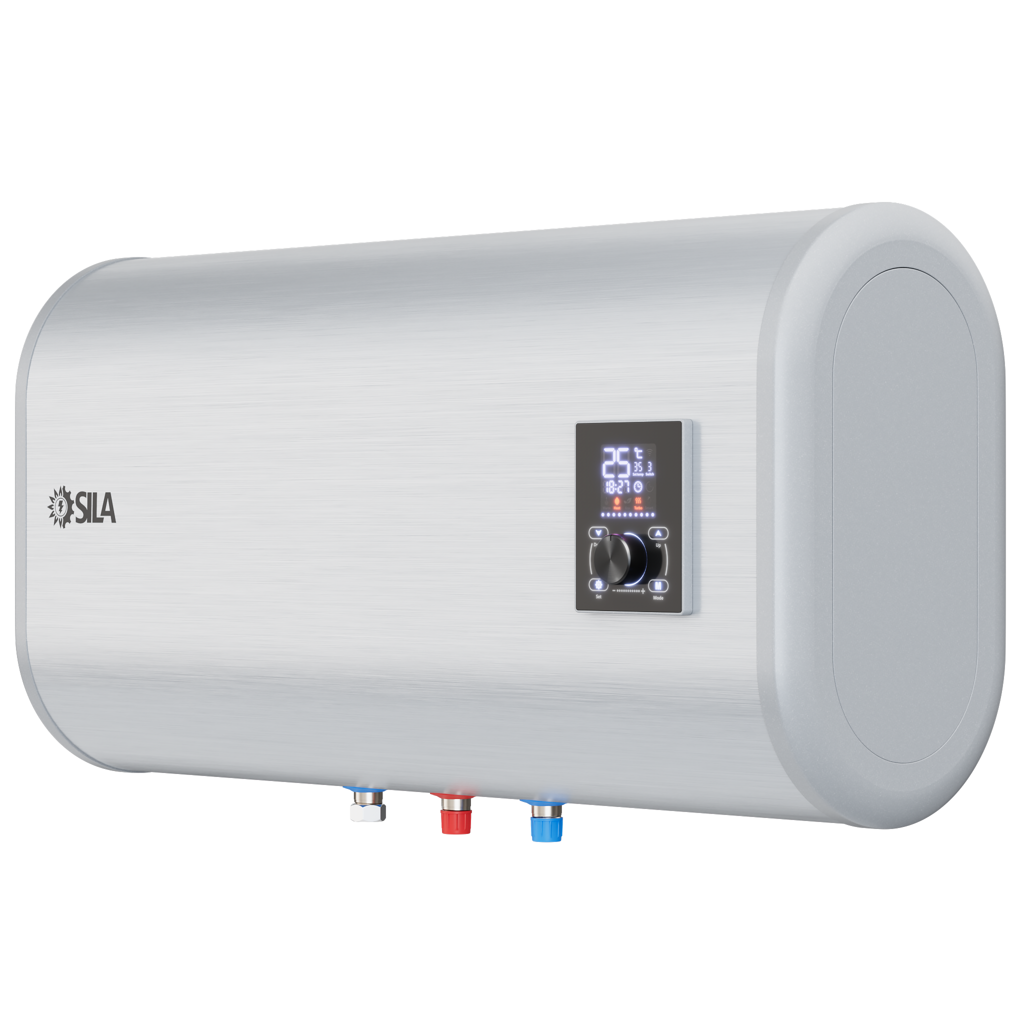 Водонагреватель электрический SILA WH50H-P накопительного типа, горизонтальной установки, объемом 50 литров со внутренним баком из высококачественной нержавеющей стали, управлением по Wi-Fi и "сухим" ТЭНом с двумя греющими элементами - является популярным, общедоступным и самым надежным решением для бесперебойного обеспечения горячей водой в домах, квартирах, офисных и производственных помещениях.